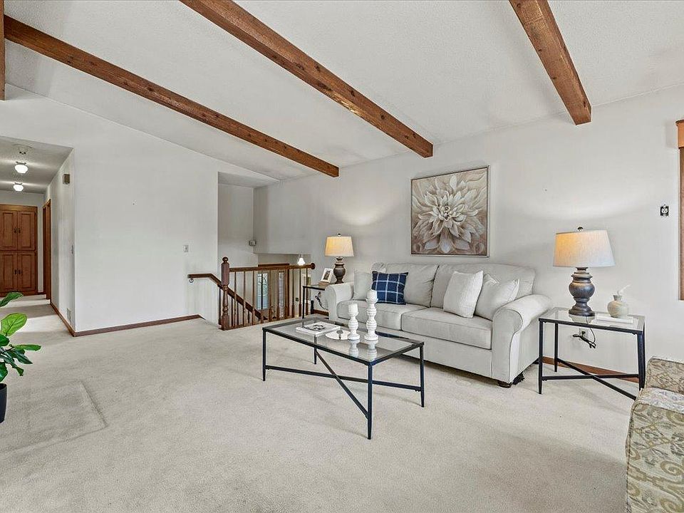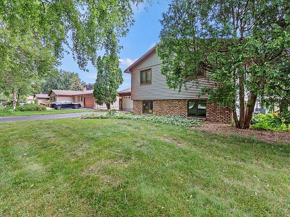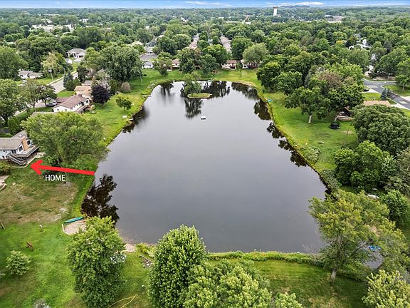 Charming 4BR, 3BA home boasting two primary suites on a private man-made lake with beaches in Mounds View! Come check out this darling time capsule with a few updates and all of the quiet lake time you could want year-round! Start with the granite tile in the foyer, and head upstairs to find the first gas fireplace, vaulted, beamed ceilings, eat-in kitchen with breakfast nook, gas range, ceramic sink, and greenhouse window. The dining room walks out to the wrap-around deck and has lake views. The main floor master has a 1/2 bath with a skylight; finishing off the main level are two more bedrooms and a full bath. The walkout lower level features a second master suite with an updated 3/4 bath, dual closets, a family room, and access to a wonderful patio with more lake views! Attached two stall heated and insulated garage with walk-up attic access and an area for a workshop with cabinets. This home is ready for you to add your touch. Must see in Mounds View Schools!