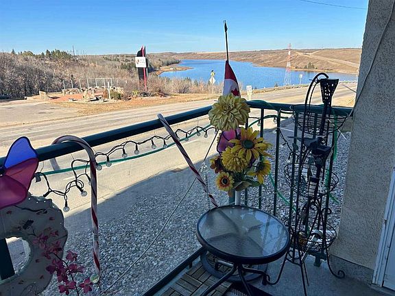 A very desirable condo on the North West corner of the building with a great view looking down the valley & Vermilion River. The unit has a cozy fireplace and has had all carpet removed and replaced with vinyl plank. The front load washer was new in 2023, A new fridge with an icemaker was new in 2023 as well. Owner had a screen door put on the deck entry. The owner says the sunset and northern lights view is incredible when you can catch it. If you have been considering condo living come take a look at this one of kind unit.
