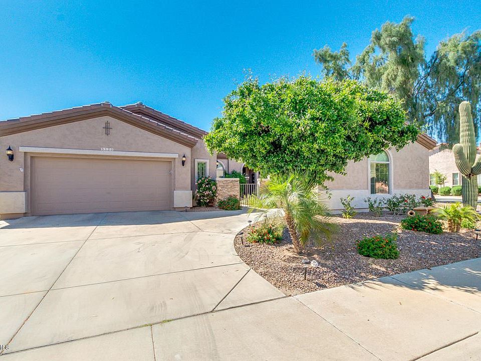 Located in the 55+ trilogy at Power Ranch Community, this amazing Sundance floorplan shows like a model home and features a 3.5-car garage! Beautiful private courtyard entry with a gas fireplace and water feature. Enter into the HUGE great room with 10-foot high tray ceiling, custom entertainment niche, and corner fireplace. The gourmet kitchen boasts stainless appliances including a 5-burner gas range, granite counters, and gray cabinets with crown molding and matching stainless pulls. The cozy breakfast room has it's own door to the courtyard. Split master with a luxurious bathroom featuring both a walk-in shower and soaking tub. 8-foot tall doors throughout, plus an R/O System, water softener, garage sink, washer and dryer, all on a corner lot. Come see this amazing home today!!