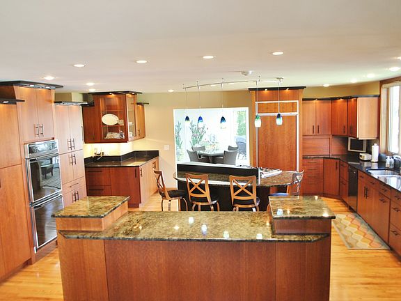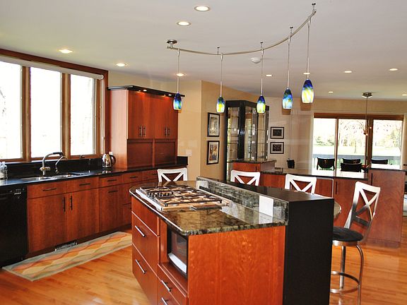 Gorgeous, Thoughtful, Detailed best describes this soft Contemporary home. Architecturally designed w/elegant living & graceful entertaining in mind. 147' water frontage w/walls of windows. Gourmet chief's kitchen w/ 2 islands & baking station opens to lg dining. Soaring vaulted wd ceiling w/stone fireplace in LR! Warmth of custom lighting thru out. Solarium! 2 Stone FP! LL walk out w/ 3 Lg bedrooms & exercise room, decks, patios, 4 piers, large flat yard. Minutes to Middleton.