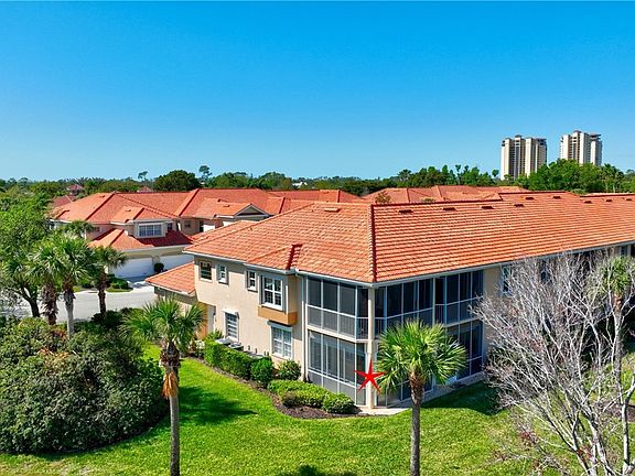 GREAT PRICE FOR THIS PRESTIGIOUS COMMUNITY CARRIAGE HOME. There are lower taxes and is not in a flood zone. It is a beautiful carriage home on the first floor with 2car garage. This desirable end unit features 3 oversized bedrooms, 2.5 bathrooms, and a 2-car garage equipped with built-in cabinetry for additional storage. Enjoy stunning lake views, exceptional privacy, and an expansive wrap-around lanai, perfect for relaxing or entertaining. The home is enhanced with plantation shutters on most windows and electric hurricane shutters for added peace of mind. Residents of this welcoming community enjoy access to two heated pools, a fitness center, pickleball courts, and a beautiful clubhouse. There is also private access to scenic walking and biking trails. HOA fees include cable service for added convenience. Schedule your tour today!
