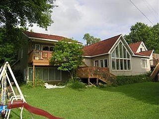 Enjoy Peaceful Living and Amazing Sunsets on Pine Lake!4 bedroom, 2 1/2 bath Contempory home with 138' of Sandy Frontage.A Unique getaway with Bright Large Rooms and Plenty of Storage and Closets.Guest House complete with Kitchen and Bath and it's own Deck built over the 2 1/2 Car Attached Garage.Relax on One of the 4 Decks, in the Beautiful Back Yard or Enjoy the Cool Central Air Inside. Pine Lake is a No Wake Lake perfect for Sailing and Fishing.