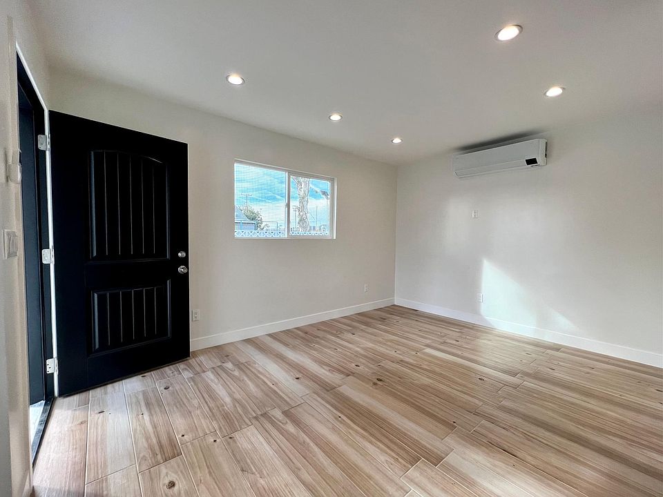 Cute little stand alone 1 bedroom bungalow that has been fully remodeled, and has everything brand new waiting for its next person to call home. Loaded with a mini-split AC/Heat system, stainless steel appliances, a washer a dryer in unit plus a sleek new bathroom with modern tiles and a stand up shower. Gated parking, outdoor space included, and pet friendly! Must see in person. Owner pays for water, tenant responsible for other utilities.