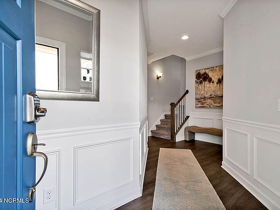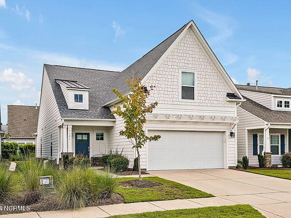 A beautiful and well-maintained home. The Owen, built by True Homes. This gently lived-in home offers 3 bedrooms and 3 full bathrooms. There is great curb appeal with its covered front porch, brick accents and decorative trellis over the garage. As soon as you step inside, you will be greeted with box-style wainscot and wood-look laminate floors. The kitchen is open to the dining area and features a large island topped with granite, as well as a gas range and white cabinets. The kitchen refrigerator included. The spacious living room is enhanced with an 11' raised coffered ceiling, crown molding, and natural gas fireplace flanked with built -in bookcases and cabinets. Natural light is plentiful as there are French doors leading to the screened-in porch with ceramic tile flooring. One of the highlights of the owner's bedroom is the trey ceiling. And in the en-suite bath you will find a dual vanity with granite countertop, a walk-in shower with ceramic tile, and a large walk-in closet. The laundry room/mudroom includes the washer and dryer, a work counter, shelving, and attic access. Enjoy time barbequing and relaxing on the outdoor patio. For efficiency, there is a natural gas heat furnace. From the beautiful custom window treatments, ceiling fans and elegant upgraded lighting to the upgraded trim & built-ins, the attention to detail in this home makes it a must see! HOA for this home includes landscape maintenance and community amenities. Features of Brunswick Forest include: three outdoor & one indoor pools, hot-tub, Fitness & Wellness Center, two cardio/weight rooms, tennis/pickleball/basketball courts, Hammock Lake, walking trails, parks, playground, dog park, kayak launch and meeting rooms. Cape Fear National Golf Course on site, membership required. The Villages of Brunswick Forest is a commercial area with restaurants, shopping, and medical facilities. Only a short ride to downtown Wilmington or