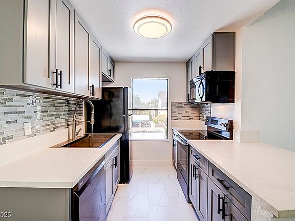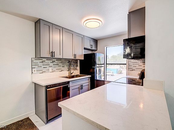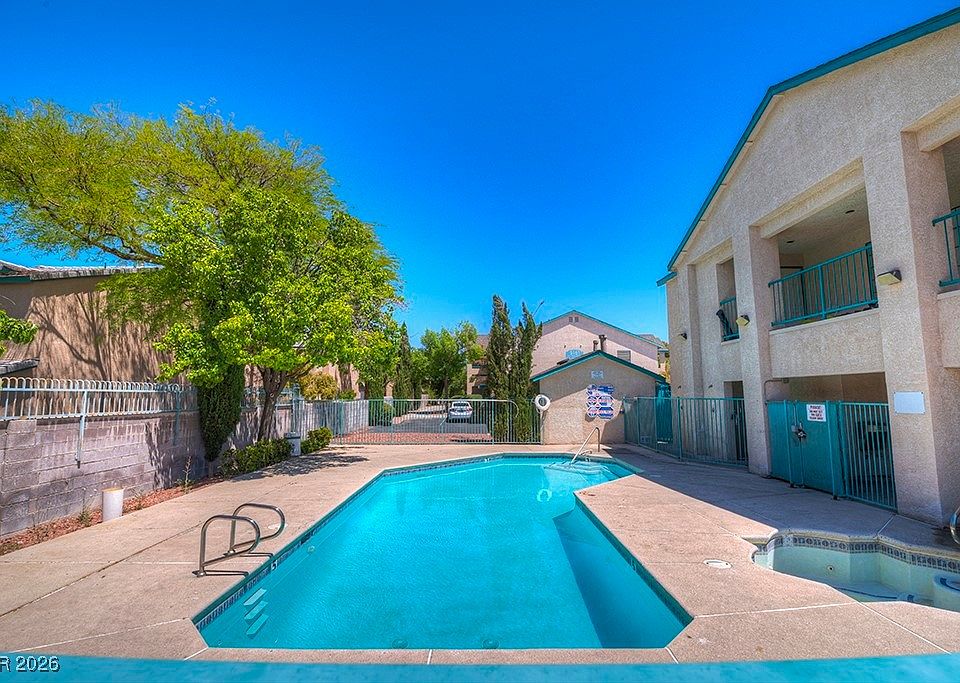 This stunning 1-bedroom, 1-bathroom condominium effortlessly blends modern elegance with everyday comfort. Located in a vibrant gated community just minutes from shopping, dining, the Las Vegas Strip, Allegiant Stadium, and major freeways. It offers a bright, open living area, a private balcony, a renovated kitchen and bathroom, quartz countertops, ample cabinet space, and numerous upgraded features. Community amenities including a sparkling pool, spa, BBQ area, fitness center, guest parking, and secure gated entry. Don’t miss this incredible opportunity to own a true gem in one of Las Vegas’s most desirable communities!