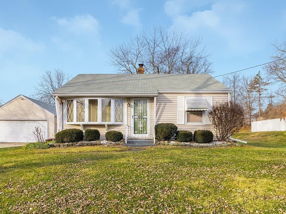 Nice 2 bedroom ranch in great location! Kitchen with updated cabinets, counter, sink, tile backsplash and laminate flooring. Updated vinyl siding, some windows. Full basement with nice size family room, den/office that is currently being used as a bedroom and laundry/storage. New ceramic tile in basement and includes a shower with new surround. Circuit breakers. Two car garage and huge yard. In an estate, to be sold completely "As Is". A great home for the price!