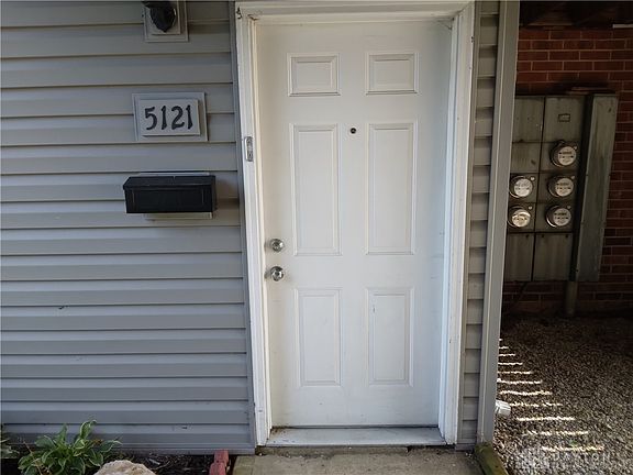 Move in condition Carriage style, one level upstairs unit with an attached garage, wood deck, new gray laminated flooring throughout, modern black light fixtures, includes a remote controlled fandelier in the living room with retractable blades, furnace 12/2023, ac 5/24, hot water heater 2021, windows 2020, walk-in closet in primarily bedroom, handicap accessible bathtub with grab bar, new toilet, new black vanity, washer and dryer hook up, Frigidaire refrigerator, microwave, glass top electric stove, dishwasher.