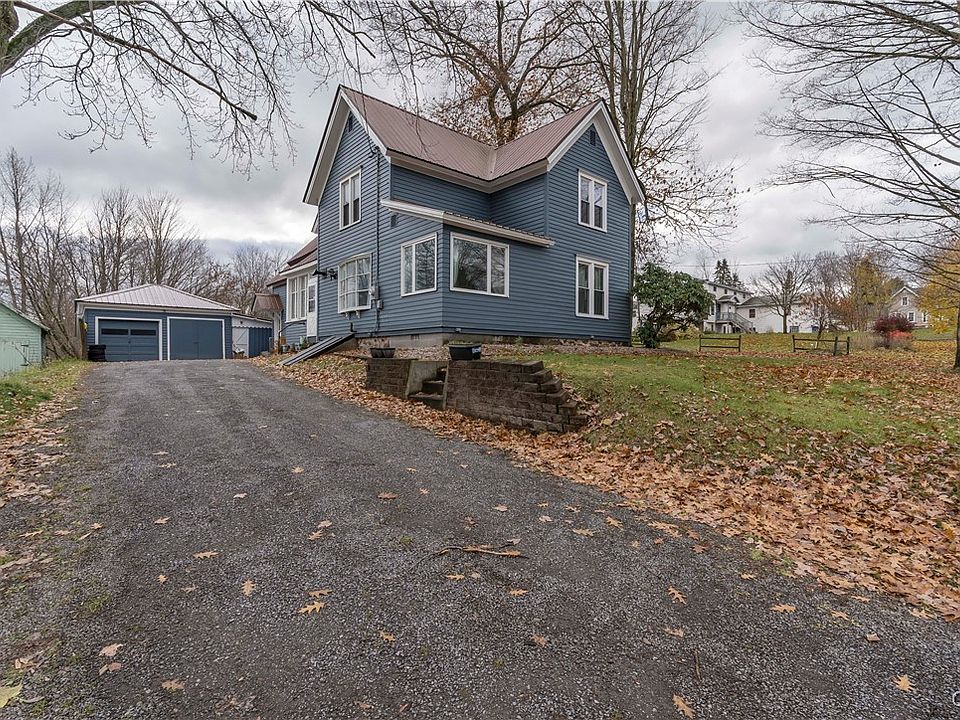 This spacious home in the Village of Castorland is looking for a new owner! Located on a quiet side street with minimal traffic about 25 minutes from Fort Drum's Main Gate. The first floor features a large bedroom, oversized bathroom with washer and dryer hookups, living room, dining room, and a conveniently laid out kitchen with beautiful oak cabinets and tons of counter space. Large windows provide lots of natural light. Upstairs includes 3 bedrooms and a full bathroom. The 2 stall detached garage has an insulated room making it perfect for vehicles, storage, and a work space. Large backyard provides lots of space to enjoy gardening, pets, and more!