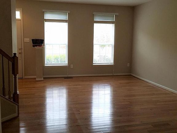 The owner will bring keys on Fri. Available Feb. 14th. Gorgeous 2 car garage Townhouse with 3 bedroom 2 full and 2 half baths in the much desired Honeygo Village. Hardwood floors on main level. Enjoy the OPEN CONCEPT Kitchen, Living Room, Dining area. Kitchen has stainless steel appliances , granite counter top, large island and gas stove. Walk out to the beautiful deck off kitchen for more living space. Master Bedroom has vaulted ceilings, walk in closets and full bath with separate soaking tub and double sink. All bedrooms have ceiling fans. Lower level has a HOME OFFICE with a powder room . Winter is here your car can be in your 2 car garage. This beautiful homes front door faces the beautifully landscaped common grounds. You can walk to the Honeygo shopping center for dinner, shopping and all other needs.
