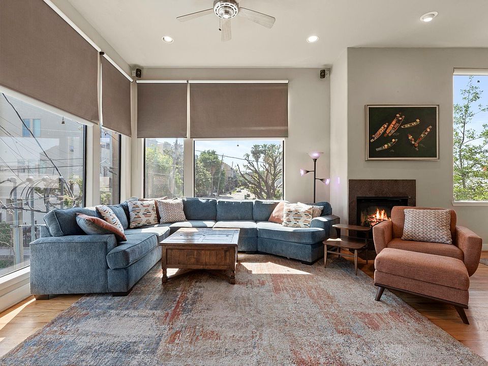Style, space, and location come together in this light-filled freestanding corner home, perfect for professionals seeking walkability to restaurants and entertainment while enjoying a refined, comfortable retreat. Recent upgrades include a new roof (Nov. '24) and a full exterior renovation, replacing stucco with Hardy Plank (’23).