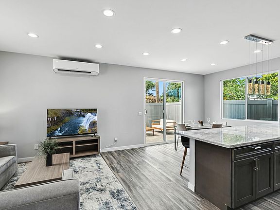Fenced yardContemporary designLush astroturfElegant vinyl plank flooringPremium stainless-steel appliancesCharming patio areaAir conditioning