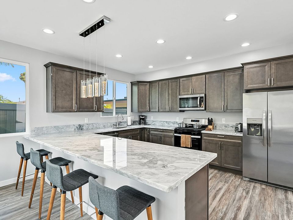 Contemporary Design: Elegant vinyl plank flooring throughout and premium stainless-steel appliances create a sleek, modern feel.