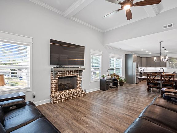 Welcome to Swan Cove! This beautiful 3 bedroom, 2.5 bath home features a spacious open-concept design with the master suite conveniently located on the main level. The kitchen is a chef's dream with granite countertops, a stylish tile backsplash illuminated by under-cabinet lighting, stainless steel appliances, a large walk-in pantry, and an abundance of cabinet space. The front of the home is enhanced with tinted windows and a tinted glass door for style and energy efficiency. Upstairs, you'll find two additional bedrooms, a full bathroom, a large bonus room, and a versatile flex room—perfect for a bedroom, office, or walk-in storage. Step outside to enjoy the screened-in porch, concrete patio, and fenced backyard, ideal for relaxing or entertaining. The home also features an extended driveway to the side for additional parking. The Swan Cove community will soon offer two stocked ponds, providing a serene setting for fishing or simply unwinding outdoors. Don't miss the opportunity to make this stunning home in Swan Cove yours! *DOES NOT CONVEY-Nest Thermostats, Nest doorbell, smart door lock and exterior cameras*