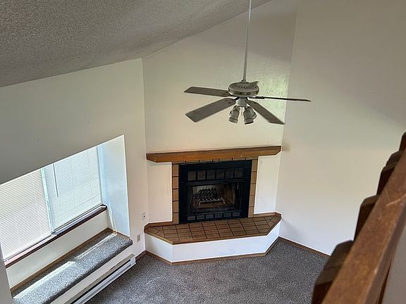 Townhome living in an HOA maintained community. This 2 story, 2 bedroom, 2 bath townhome with attached garage has new flooring throughout. A vaulted ceiling in the living room, which features a wood burning fireplace, gives the lower level an open, grand feel. Sliding glass doors lead out to the patio and HOA maintained green space. Dining area seamlessly flows into the living room with a built in desk are conveniently located between. In the galley style kitchen, you will find stove, dishwasher, refrigerator and a stackable washer and dryer.