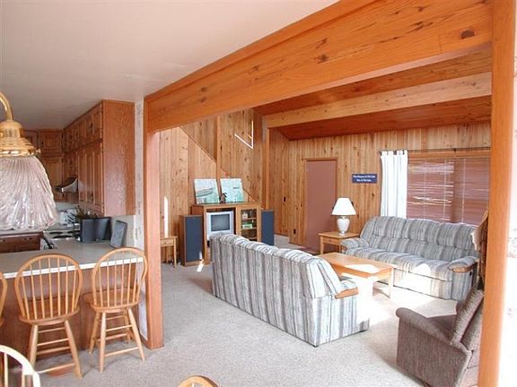 Just wait until you see this Gem! 151 ft frontage on one of the Chain of Lakes - you can get to 4 of 7 lakes without getting out of your boat! Talk about natural views from the living room and from the 1300 sq. ft of decking! There are no structures across the lake - just water & the changing colors of the seasons as the leaves change! The interior of the home features lots of wood (walnut, teak and cypress) Lots of glass. Ceramic floor in the kitchen. 3 bedrooms and 2 full baths. New carpet in 2011. New well pump in 2012. The hot tub is included! 600 sq ft of all season floating dock - no need to remove in the winter. The 2 car garage has a 10 X 16 attached 3-season room with views of the lake and is adjacent to a neat fire pit. EVERYTHING IS INCLUDED IN THE HOME EXCEPT A LAZY BOY CHAIR T HAT WAS A GIFT! Over $92,000 in improvements have been spent since 1995. I don't think you'll want to miss seeing this one!