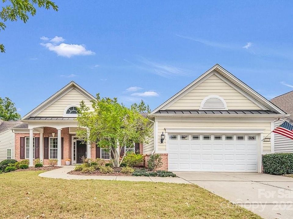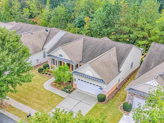 The floorplan you've been waiting for!! Step into this beautiful, OPEN ranch floorplan which rarely comes to market in Sun City (the *premium* Bluffton Cottage floorplan w/ extended sunroom option). Inviting two bedroom, two bath home with pristine hardwoods featured in main areas and brand new carpet in bedrooms. Spacious kitchen with natural wood cabinets (that compliment the hardwood floors), lovely tile backsplash, gas cooktop, wall oven & microwave, new disposal (2024) and new fridge/freezer in 2023! Great room with gas fireplace flanked by built-in shelves and cabinets with black granite countertops to match the kitchen. Adjacent is the sunroom, clad with high end grasscloth wallpaper and plantation shutters, overlooking the backyard which is rich in privacy with mature pine trees. Enjoy new lighting fixtures in main living areas, elevating each space and providing elegant ambiance. Generously sized primary bedroom suite with tray ceiling and fan, its windows bringing in beautiful natural light and pretty views of the backyard and deck. Primary bath has a garden tub, separate walk-in shower, dual sinks with vanity area, W/C, linen closet and a full walk-in closet. Secondary bedroom with full bath suite, also accessible via the hallway. 2 car garage with new door opener in 2025 and finished with epoxy floors. This home is perfectly positioned on a cul-de-sac lot (no traffic), tucked deep inside the neighborhood in "The Meadows" area which provides peace and quiet. Enjoy the outdoors on the newly refinished large back deck with pergola. Amenity rich community of Sun City includes 3 swimming pools (1 indoor), 8 clay tennis courts, largest ballroom this side of uptown CLT, 8 pickleball courts (4 with cushioned surfaces), robust selection of clubs/groups to join and so much MORE! Come enjoy all that Sun City has to offer, and make this lovely home yours!