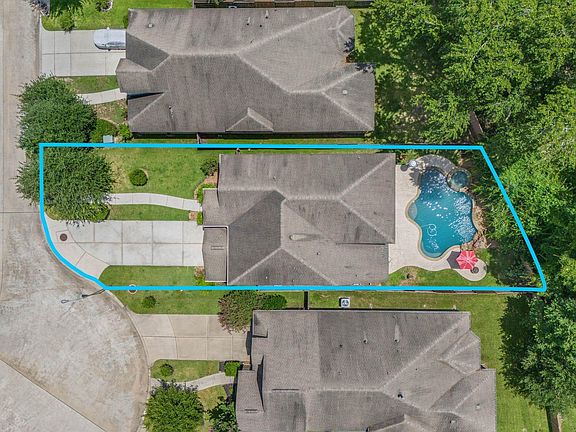 Come Fall in Love with this stunning, well maintained home in Sawmill Ranch! As you enter you are greeted with an abundance of natural lighting and a neutral color pallette to make decorating easy! Your dream home has the backyard you've been waiting for! A custom designed PebbleTech Pool with a spa, cool decking and waterfall! There is added privacy with lush landscaping and NO BACK NEIGHBORS! This 1st floor has an open concept design & soaring ceilings in the entry and living room! Your primary suite over looks the sparkling pool and has a huge walk-in closet! The 2nd floor offers 3 spacious bedrooms and a state of the art media room fully equipped with a projector, large screen, sound, and custom lighting! There is an oversized gameroom that can accommodate any size furniture! Also included-water softner, patio gas & Water line, & 2022 air handler. Located in a cul-de-sac just minutes from The Woodlands, shopping, dining, medical facilities, I-45 & the 99! Schedule your tour today!