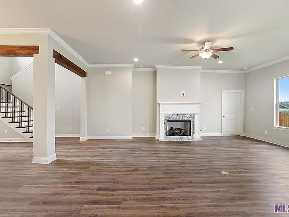 Vinton B floorplan by Level Homes in Riverton. The Vinton plan is a two story home with WATER VIEWS, 5 BEDROOMS, 3 BATHS, + LARGE OPEN LOFT. Enter into your 2 story foyer which opens up to the large open living, dining and kitchen area with luxury vinyl plank flooring throughout. The spacious living room features a vent-less gas fireplace with wood trim casing, granite surround and milled mantle and plenty of windows to let in all of the natural lighting! Kitchen features custom painted cabinets with extended uppers, 3 cm Alaska White slab granite, beautiful 3x12 white craft gloss backsplash, satin nickel plumbing fixtures, stainless steel appliances including a gas cooktop with wall oven and microwave, under cabinet lighting, pendant lights over the large center island and walk in pantry. Kitchen opens up to the large covered patio which is perfect for entertaining. Master suite and additional bed and bath on the main level. Master suite features a huge spa like bath with dual vanities, 3 cm slab granite, custom framed mirrors, separate soaking tub and job built tiled shower with seamless shower door, walk in closet and a separate water closet. Upstairs features 3 beds, full bath with double vanity and a large loft area. Yard is professionally landscaped and fully sodded.