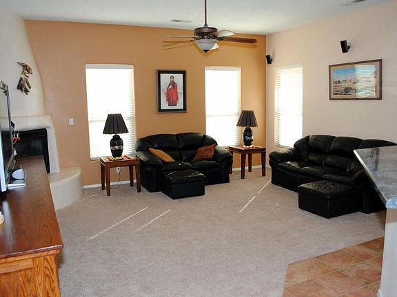 This beautiful open floor plan home on a 1.01 acre lot features 8 & 10 foot ceilings, a Kiva styled Gas Log Fireplace, water softener system, wired for surround sound and security system. Large finished (23 foot by 22 foot) two car Garage with new opener. Huge two tiered backyard. The upper manicured block walled area features both a Covered Patio and an Open Patio area and is landscaped with sidewalks, grass w/ sprinkler system, and planters ready for your spring gardening. The large wide open lower back tier is completely fenced with large trees, fire pit, and irrigation. The lower Back Yard is accessible by large gate allowing for RV or vehicle access. Do not miss out on this wonderful property!