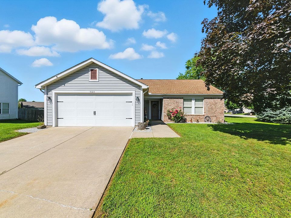 Welcome to this well-maintained home in the desirable Saddlebrook Subdivision. Offering 3 bedrooms and 2 full baths, this property has been thoughtfully updated with modern farmhouse features that enhance both style and function. Recent improvements include: new water softener, Ecobee smart thermostat, and new ceiling fans in the bedrooms. The eat in kitchen features a newer farmhouse-style chandelier, complemented by a farmhouse mount ceiling lights throughout. Additionally, the kitchen has been reimagined with stainless steel appliances and new sink, disposal, and a stylish backsplash and beverage cooler. Additional updates include new light switch and outlet covers, downspout extensions, and a new garage door. Inside, you’ll also find new laminate flooring, providing a fresh and updated look throughout.This home is move-in ready and located in a sought-after neighborhood with its convenience and community feel.