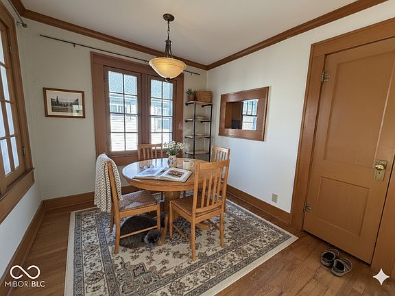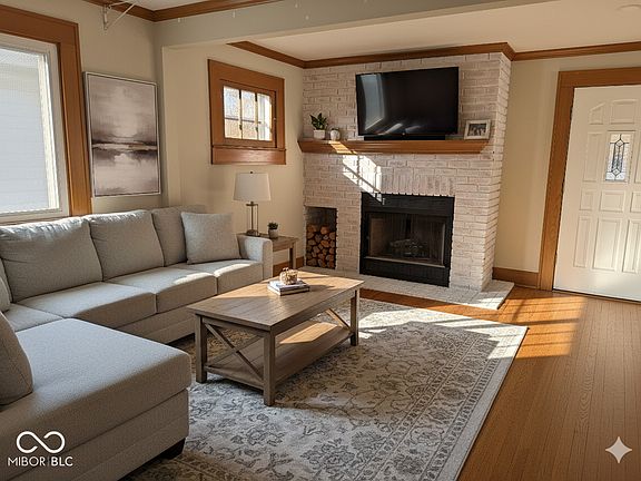 Imagine yourself enjoying this classic home with modern comfort in the heart of Speedway. This 1920 Craftsman bungalow is just steps from Speedway's Main Street and the Indianapolis Motor Speedway. Move-in ready with two bedrooms, a full bath, and 912 square feet of charm and updates. The living room features a brick wood-burning fireplace with built-ins, plus hardwood floors, solid wood doors, and natural trim throughout. The lower level provides great storage and space for a possible third bedroom or office. Enjoy the enclosed front porch and fenced backyard-perfect for relaxing or entertaining. Updates include a new roof (2023), HVAC (2019), water heater (2017), and fresh interior paint.