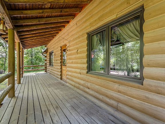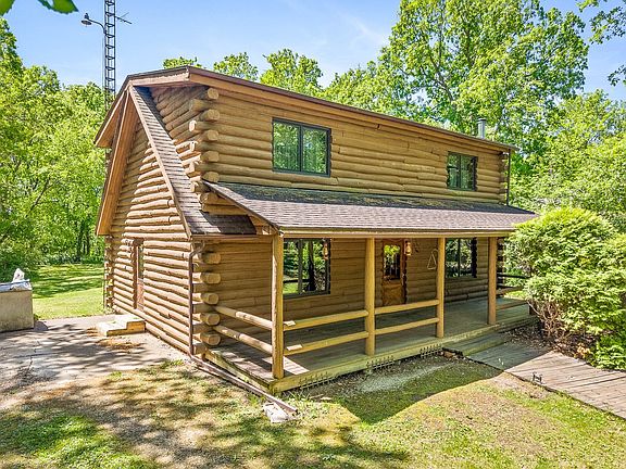This log cabin is situated on a cul-de-sac at the end of a quiet street on a beautiful, wooded 1 acre lot. It's a perfect setting for tranquility and peace. Take the country driveway up to this home with an inviting front porch to enjoy the sounds of nature. Inside, you'll see the logs throughout. The wood-burning stove keeps it toasty in the winter, and there's a formal dining room off of the large kitchen to entertain. The main floor bathroom has a hook up for a washer and dryer, or the basement could be used. The open stairway takes you upstairs to a main bedroom with vaulted ceilings and a walk-in closet. There is access to the bathroom from either the hallway or the main bedroom.Two more bedrooms upstairs for a total of three. Come, take a look at it and try it on for size!
