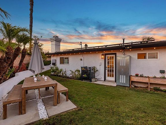 Charming Single Story in Clairemont on Corner Lot with Owned Solar! Welcome to this beautifully updated, light-filled home in the heart of Clairemont. Boasting owned solar, this energy-efficient gem blends modern style, comfort, and smart functionality. The bright, spacious living room is warm and inviting with a cozy fireplace, skylight, and an oversized accordion door that seamlessly opens to the backyard — perfect for indoor/outdoor living and entertaining. The upgraded kitchen is a chef’s dream, featuring quartz countertops, newer cabinetry, stainless steel appliances, stylish backsplash, farmhouse sink, and a breakfast bar ideal for casual dining or entertaining guests. Enjoy sleek contemporary luxury vinyl planks throughout. Retreat to the generous primary suite, a recent beautiful remodel, complete with an ensuite bathroom and large walk-in closet with built-in cabinetry for convenient dressing, storage and organization. Natural light fills every room, enhancing the open and airy ambiance throughout the home. Outside, enjoy a versatile multi-zoned yard designed for play, relaxation, and entertaining — complete with lawn, patio space, BBQ area, and low-maintenance landscaping with an automatic sprinkler system. You will appreciate the spacious laundry area, large one car garage with extra storage space and 2 additional covered parking spaces (carport), and do not miss the side yard area, double gated for RV, boat or extra car parking. Located in one of San Diego’s most sought-after neighborhoods, this stylish, move-in-ready home offers the perfect blend of comfort, convenience, and modern living. Don’t miss this exceptional Clairemont opportunity! Seller to select services. Room dimensions & sq footage are approximate, per builder & assessor's record. Mello-roos is estimated. All MLS & marketing info is approximate & not guaranteed. Solar/Washer/Dryer/Fridge are included. Some interior furniture and patio furniture/accessories are negotiable.