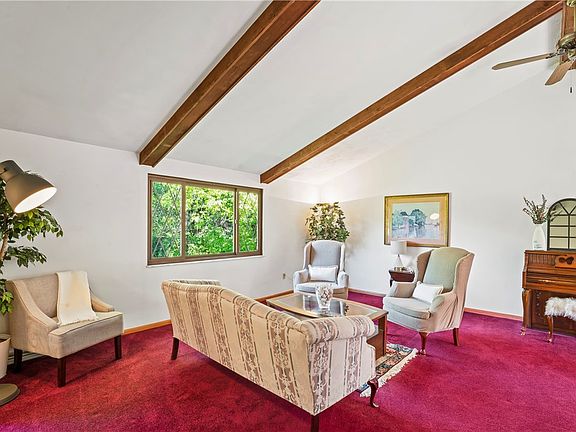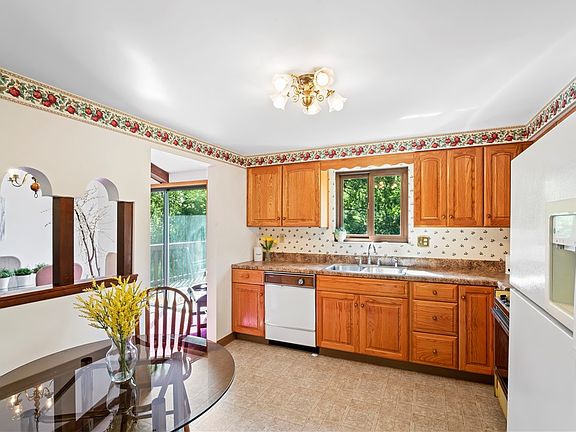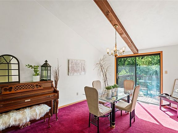 Well maintained, original owner, move-in ready home nestled on over 1/2 acre in a lovely, quiet neighborhood! Walking inside of the foyer, you will be greeted with a cathedral ceiling and double wooden beams draping the open living/dining area along with beautiful custom arched partitions throughout the living space. A large window and sliding glass door leading to the deck overlooking the private tree lined back yard, allow plenty of natural light. The eat-in kitchen features a double stainless steel sink, solid oak cabinets and neutral colored countertops and flooring. All 3 BR's are generously sized with plenty of storage while the Master BR features double closets and a gorgeous view. In the basement, you will find a large, finished game room featuring a brick FP and bonus room that could be used as a home office, hobby, or 4th bedroom; a utility room with washer and dryer; and a half bath with plenty of room to be converted to a full bath.
