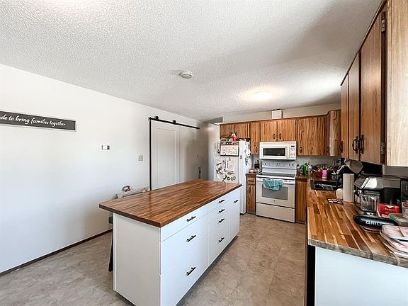 This welcoming 5-bedroom, 2-bathroom home sits on a generous corner lot in Girouxville and truly offers everything a family could want. The open-concept main floor boasts a bright, airy layout with large windows, an eat-up kitchen island, and abundant cabinetry that flows seamlessly into the dining and living areas. Ideal for both everyday living and effortless entertaining. 3 main-floor bedrooms and a 4-piece bathroom provide convenience and comfort, while the primary bedroom offers direct access to the back deck and yard through sliding patio doors. You’ll also appreciate the main-floor laundry and a spacious mudroom-style entrance off the attached garage. The fully finished basement adds incredible versatility, featuring a large rec room, 2 additional bedrooms, a 3-piece bathroom, a flexible bonus room perfect for an office or home gym, and 2 oversized walk-in storage closets complete with built-in shelving. Outside, the expansive lot delivers ample space for outdoor activities, and the back-lane access is perfect for RV parking or extra storage. Move-in ready and packed with value, this home is the perfect fit for a growing family. Book your showing today!