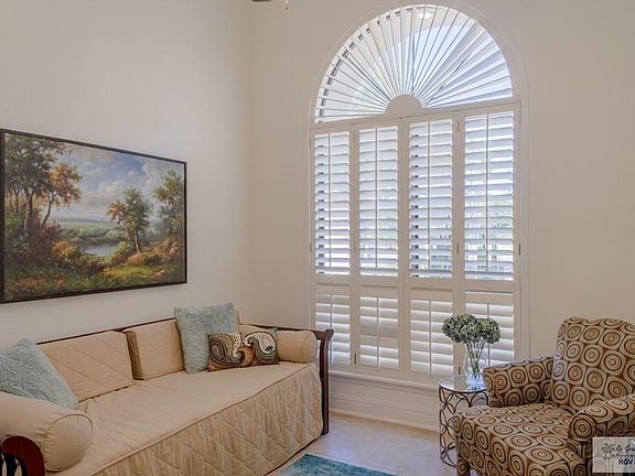One of a kind 4 bedroom home w/Westerly Fairway View of hole #11 at Harlingen Country Club. Beautiful Courtyard entry off of the spacious driveway parking & 3 car garage. Formal meeting room entry w/picturesque view to the golf course & large spacious dining rm at the entry of this home. Main living area & kitchen area is a combination of living, eating & cooking for the ultimate relaxation area that leads to the awesome covered patio & spectacular views. Split floor plan has 2 bedrooms on the N side and the Primary bedroom & four bedroom/office on the S side of the house. Quartz Counters in kitchen & Primary bedroom w/granite in the hall bathroom. Roof in 2006, A/C in 2019 All new cabinets, appliances, molding, painting, fixtures in interior of home since the flash flood of June 2019.