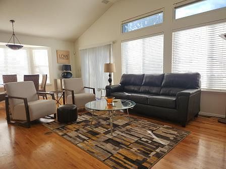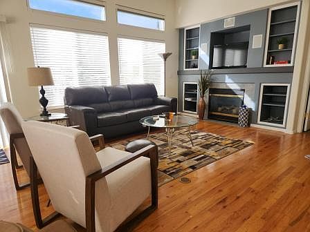 STR- Furnished. All inclusive. Stylish 4-bedroom home with 2-car garage and yard. Newly remodeled with hardwood floors on the main floor, new carpet in the bedrooms, and a family room. Two bedrooms and 2 baths up and 2 bedrooms 1 bath down with a LARGE family room.