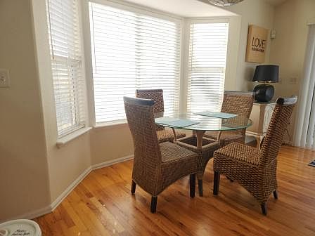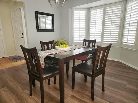 Kitchen has ample counters,new stainless steel appliances, and granite countertops. The home has an eat-in kitchen, a counter bar, and a large formal dining area. Beautifully landscaped, all, with a large patio in the backyard with a sitting area.