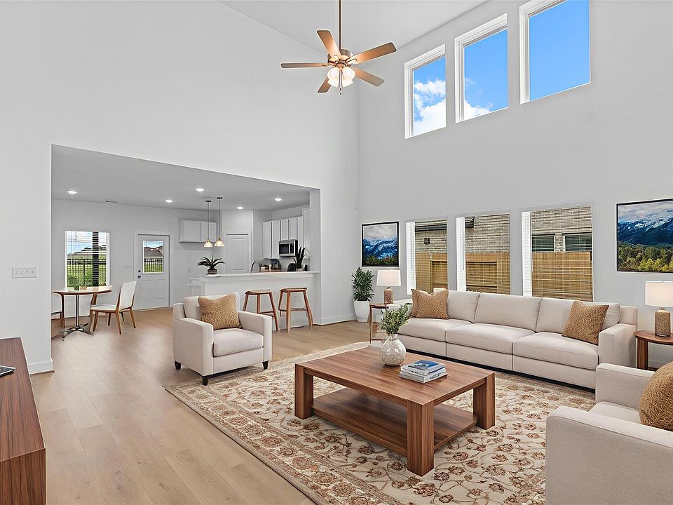 Unwind & take in the serene lake view from the spacious covered patio! 3 car garage & sprinkler system. This sought-after Trinity plan by CastleRock Communities sits in a scenic new community just minutes from 288! Massey Oaks greets you with a majestic oak-lined entry, scenic trails, lakes, a park, and a scenic pavilion! Grand entry with high ceilings, French doors open to your study/home office. Stunning durable rigid core wood large plank vinyl flooring covers all first floor! Dramatic two-story sweeping modern cable iron staircase, 2 story walls of windows in the family area that flows into the gourmet kitchen & casual dining! Gourmet Kitchen boasts tall white shaker cabinets, subway glass tile backsplash, island, stainless steel appliances, beautiful quartz counters, undermount sink, & more! Private Primary Suite, enjoy the spa-like bathroom with a massive walk-in super shower, his & her sinks vanity & walk in closet! Upstairs, Game room, 3 guest bedrooms & more!