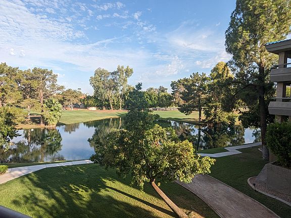 BILTMORE TERRACE at ARIZONA BILTMORE LINKS GOLF COURSE your new relaxed PEDESTRIAN FRIENDLY GATED & PATROLLED Community w 2-Pools+Spas, Gym & Clubhouse Convenient direct access to Life's necessities from BILTMORE PLAZA shopping w Starbucks, Banking, SAFEWAY Grocery+Restaurants & WAYMO rideshare stops! Uber-convenient! 3-Bedrooms 2-Bathrooms NO Interior Steps - Spacious Primary Suite split from additional bedrooms - Upper Level location for the BEST VIEWS of the 3rd Green, Tee & Lakes of AzBiltmore Golf Course or al-fresco dining on your oversized private balcony w stunning views . Clubhouse, Gym 2-Spas & 2-Pools Solid-Built, NO street exposure...just the scenic Lush Green Golf Course & Lake from an upper level Terrace Pardon the ongoing improvements currently in progress...this is it!