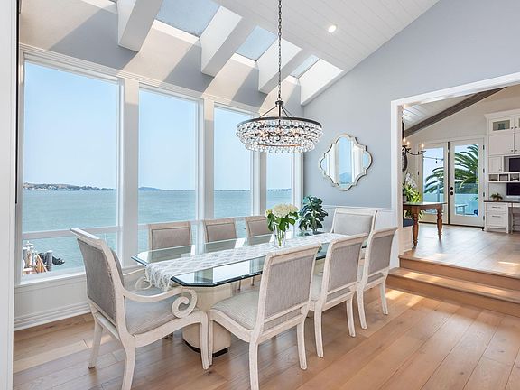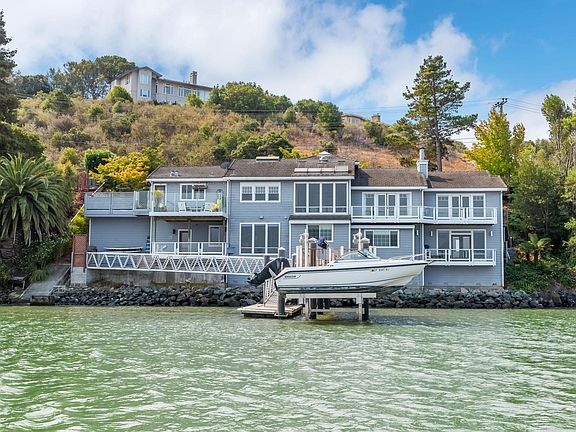 Rare waterfront opportunity to live on the San Francisco Bay with your own private boat dock. Water views from every room in the house with over 4,200 SF of living space. You can hear the water lapping against the shore all day and at night, watch the sunset over Mt. Tam. Located minutes from San Francisco, boutiques and fine dining, as well as walking distance to schools Marin Montessori and MCDS. This spectacular, fully re-modeled home sits on two levels, oak hardwood floors throughout and includes a main residence with 4 bedrooms and 4 bathrooms. There is a large, separate in-law suite/work from home office, that includes a full kitchen, full bath and its own washer/dryer again with its own private waterfront deck. This fully gated property features views and privacy. A large chef's kitchen has everything you need for whipping up a gourmet meal, with premium appliances, a beautiful island with bar seating and a separate breakfast nook with waterfront views. Master bedroom includes large walk-in closet with new closet system, floor to ceiling windows, new bathroom with 2 sinks, towel warmer, private toilet room, soaking tub, fully enclosed marble shower and radiant floor heating throughout. Spacious living room with fireplace and wall to wall windows, another long waterfront deck, high beamed ceilings, separate wet bar all with the most impressive WOW factor water views. Mudroom designed with family in mind, two tall cubbies for storing shoes and bags as well as a full size (150 bottles) wine fridge. Large 2 car garage with storage, upgraded epoxy flooring and outstanding windows over the water. Outdoor area fits trampoline, BBQ and room for a game of basketball (hoop installed). Separate deck off the kitchen offers a tranquil al fresco waterfront dining that comes equipped with outdoor speakers and ceiling mounted gas heating for the cooler nights. Requires excellent credit and verification of income, first month rent plus 2 months refundable security deposit. Minimum 12 month lease. Will consider longer. Pet friendly with 2 small dog doors already installed. Will consider furnished or partially furnished for additional fee. Owner pays for gardener. No smoking. Tenant pays all utilities and trash.