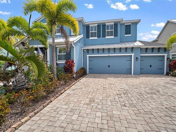 This is the MiraBay home you’ve been waiting for; in this stunning 4 bedroom, 2.5 bathroom, 3-car garage pool home, perfectly positioned on one of the largest lots in Admiral Pointe. From the moment you arrive, you’ll be welcomed by lush tropical landscaping that sets the tone for true Florida living. Step inside to find an open floor plan with wood plank tile throughout the main floor, creating a warm and inviting flow. The gourmet kitchen is the heart of the home, featuring upgraded cabinetry, with top of the line GE café microwave and double oven with a 6-burner gas stove, oversized island, and an eat-in space that overlooks the living area. The primary suite is conveniently located on the main level, offering his-and-hers closets and a spa-inspired bathroom with separate vanities, a garden tub, walk-in shower, and additional walk-in closet space. Upstairs, you’ll find three spacious bedrooms, a full bathroom, and a versatile loft—perfect for a home office, game room, or cozy retreat. But the real showstopper is the backyard! Step outside to your private paradise featuring a heated, inground pool with waterwall feature and with screened enclosure, a separate outdoor dining area under a pergola, and an outdoor kitchen space plumbed for gas and electric, ready for your custom design. Whether you’re hosting a barbecue, enjoying cocktails al fresco, or letting your fur baby play in the fenced backyard, this home is designed for fun and relaxation. This is more than a home—it’s the Florida lifestyle at its finest. Don’t miss your chance to make this MiraBay beauty yours! The exclusive Admiral Pointe Portion of MiraBay has its own clubhouse for events and activities and its own heated year-round pool for your enjoyment. This is truly a family-friendly community with lots to do, every day. Admiral Pointe has their own clubhouse and heated pool for ease and convenience as well as the main pool and clubhouse in the main portion of MiraBay. As a resident of this gated resort-style coastal community, you will feel like you are on vacation every day. This home is located in the Beautiful waterfront, resort-style community of MiraBay!!!! This resort-style community has a community clubhouse, heated-resort-style Olympic swimming pool, 136 ft water slide, parks, 3 playgrounds, gym, cafe with a full liquor license, basketball courts, tennis courts, fitness center, 135-acre lagoon where you can rent kayaks and paddle away, and much, much more. You will feel like you’re living in a 5-star resort! This community has it all. This home is centrally located and convenient to Tampa, Orlando, Bradenton, Sarasota, and St. Petersburg where you can experience the best Florida beaches, shopping, and entertainment. The Florida lifestyle you've been dreaming of awaits you. Paradise awaits! Call today for your private showing.
