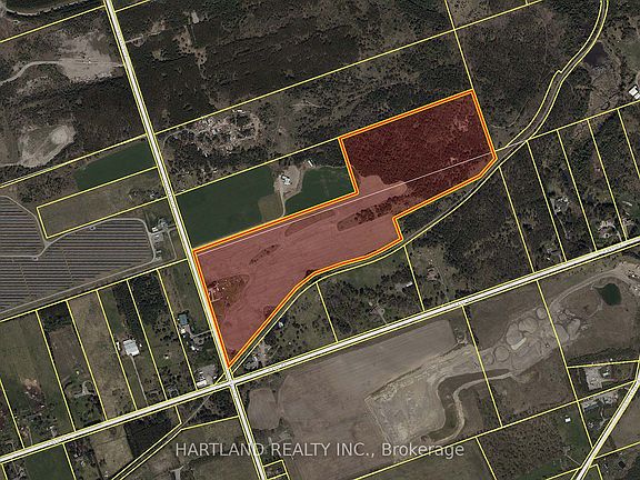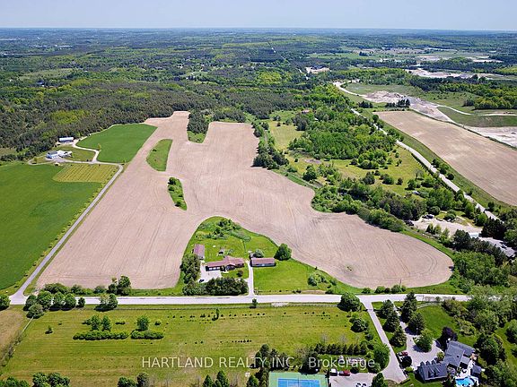 64.7 Acres Tranquil Hobby Farm with Multiple Buildings- Charming raised bungalow offering 3+1 bedrooms, an in-law suite with separate entrance and walk-out, and an attached 3-car garage with multiple driveways providing ample parking. Inside, you'll find spacious principal rooms with laminate and ceramic flooring throughout. The upper and lower levels can function as separate units, making this property ideal for multi-generational living or rental income.The land features two barns, several outbuildings, and a small EP-protected forested area, creating a peaceful, natural setting. With spectacular views, sand and gravel on site, and forest at the rear, the opportunities are endless whether as a hobby farm, land bank, or your own country retreat. Conveniently located near Hwy 404 and Bloomington for quick access to the city.