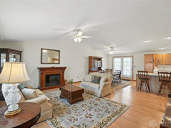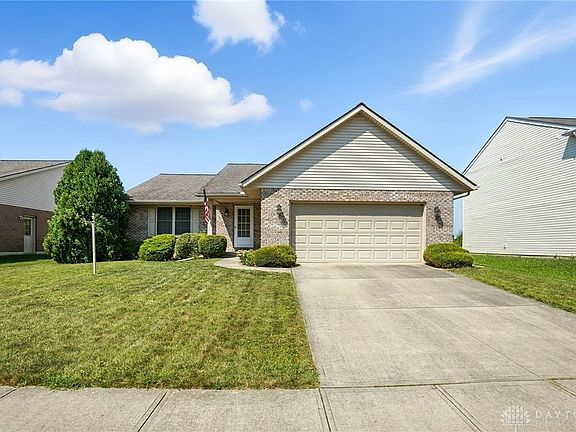 Welcome to your inviting and relaxing, beautiful next home! You won't want to miss this one! A stunning 3-bedroom, 2 full baths, well maintained, solid, brick ranch that has not been on the market since built in 2009 by Hoppes builders, when owners bought it. Check out the Open Concept floor plan! You will reside in the desirable Sunny Ridge area which has NO HOA fees and in the sought after Kenton Ridge School district. This is a lovely home for a family wanting KR schools or an Alternative to Condo Living with all bedrooms, baths, and laundry on the 1st floor! Features vaulted ceilings in the living room/dining, kitchen and master bedroom. 6' fenced back yard with a wonderful 8x12' storage shed, 2 car attached garage and a quiet peaceful setting in Moorefield township are just a few of the amenities! Great landscaping and perineal flowers and flagpole on the front porch can stay. This unique home has special views for morning coffee on the covered back patio and it overlooks the fields where Amazing Sunsets take place regularly! As you enter the home, you will notice it is well cared for, is super clean, has a great flowing floorplan! Kitchen is large with a super island with bar stools that stay, and open to the living room, dining area! All kitchen appliances stay too! Lots of windows with blinds and ceiling fans throughout the home. Mechanicals are in the huge basement which is good for storage (shelving stays) and could be finished out for a nice Rec room/playroom. The furnace was serviced in 2024. Bathroom toilets were replaced in 2024 and have raised seats and grab bars. Grab bars going in and out of the garage as well can stay or go. See the attached virtual tour video then see for yourself the possibilities that await! Call your realtor today to schedule a private showing. All this beautiful home needs... is you!