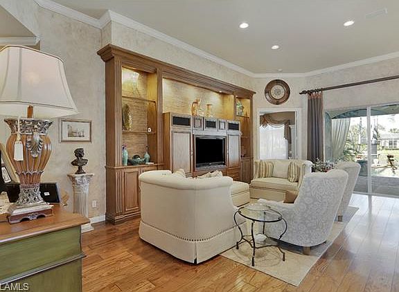 Just listed. Most desirable home in Island Walk!!! This Carlyle single family home boasts custom design and fine craftsmanship.There are so many upgrades, they are listed on separate pages at the home. This exquisite 4 bedroom, 3.5 bath home, features model quality upgrades such as the gourmet kitchen (valued at over $100,000.) with Sub Zero refrigerator and Wolf stainless steel appliances, including double wall ovens, warming tray, wine cooler, granite countertops, custom cabinetry, etc. The open floor plan offers a spacious tiled dining room; genuine hardwood floors throughout the great room area. There is a custom entertainment center with large flat screen TV and 5 speaker surround sound system. Crown molding in all rooms. The dual master bath, with its beautiful marble floors, granite countertops, custom cabinetry and shower, makes it feel like a sanctuary! Finally, the customized electric and solar heated salt water pool with its waterfall and surrounding lush landscaping will make you think "it doesn't get any better than this" a beautiful, elegant Carlyle model home, tropical landscape and lighted surroundings. Priced to sell. **REALTORS, PLEASE SEE SHOWING INSTRUCTIONS.*