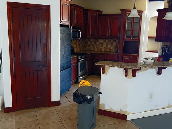 Storm shelter in garageMake-up vanityBeautiful open floor planShower and jetted tubStained cabinetsGranite countertopsDouble sinks