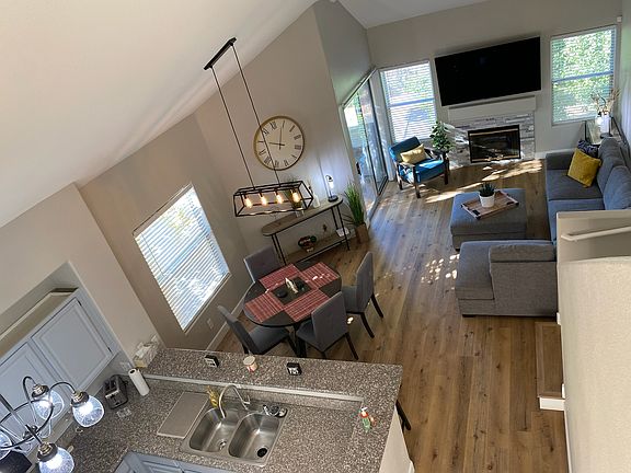 This spacious 1,287 sq ft condo on the second floor features 2 bed + LOFT, offering added value for those seeking extra space for an office, media area, or guest use. The bright and airy living room includes luxury vinyl plank flooring, a cozy fireplace, and access to a private balcony with community views. The kitchen features updated stainless steel appliances and ample cabinet storage, while fresh paint throughout gives the home a clean, move-in-ready feel. The primary suite offers generous closet space and an en-suite bath. Additional conveniences include in-unit laundry, central AC, and a detached 1-car garage with unassigned guest parking.
