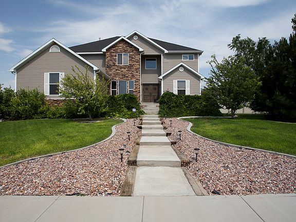 Your Forever Home! This amazing property boasts 5 bedrooms, and 4 1/2 bathrooms. 4 bedrooms are directly attached to a bathroom (one is a Jack and Jill bathroom with separate sinks) and bedroom in basement has bathroom nearby. Sitting room, office or formal dining, master, kitchen, and grand living room on main level. Covered deck in back yard looks over fully landscaped, fully fenced yard with built in BBQ and counter, fire pit, dog kennel and 2 storage sheds. Jacuzzi pad and RV parking. Large courtyard in the front. Majestic lighting and upgrades throughout. Family room in basement includes a large built counter for storage or entertainment. Theater room, office and craft room in basement. 2 ac units, 2 water heaters. Nearly 300 sqft of storage space in attic. Come home for good!