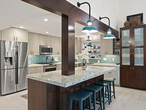 Nestled along Ventura County's stunning coastline is the idyllic beach community of Mandalay Shores. Realize the dream of coastal living in this thoughtfully reimagined and beautifully designed home. The stunning chef's kitchen is the centerpiece of this property, opening to the dining and living rooms, while creating a functional and inviting space for entertaining. The generously-sized island provides plenty of seating, showcasing custom cabinets in coordinating finishes, stainless appliances, striking stone counters, a glass backsplash, an inlaid-tile 'accent rug' and a large pantry. There is even a prized pizza oven in the dining room. Two bedrooms, a full-sized bath and an oversized three-car garage complete the first floor. The second level has two primary suites and an expansive family room overlooking the living space below. One of the primary suites has a remodeled bath with a barn door and hand-selected beach stones on the backsplash and in the shower. A wall-mounted towel warmer rounds out this luxurious bath. The second en suite features ample closet space, a bathroom with pedestal sink, and a large and sunny deck. Smooth-surface flooring throughout is ideal for beach living. Over the last ten years, the owners have upgraded so much more of this home, including replacing the windows and doors, installing the beautiful paver driveway and creating a tranquil backyard sanctuary. The yard has a gate that opens to a pathway leading to Mandalay Beach Road. From there, it is a very short block to the beach, with its pristine sand, surf and incredible sunsets! The home is less than 2 miles from the beautiful Channel Islands Harbor, with its well-known Sunday Farmers' Market, and a short distance to two different beach parks, which feature yoga classes, play areas and sports courts. Less than 1 mile away is a pathway that provides beachside access for bikes, strollers and wheelchairs. The lifestyle in Mandalay Shores is ideal for both full-time living and weekend getaways. Move-in today, entertain tonight!