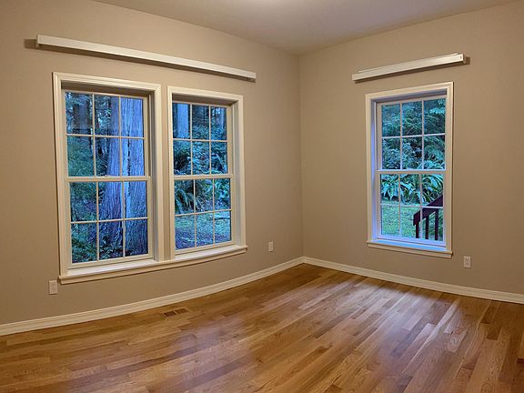 Nestled in an unspoiled Pacific Northwest forest on 10 acres, this charming rental house offers the perfect blend of seclusion and comfort. The 960 square foot, open architecture house has been thoughtfully designed with one bedroom, an office, a cozy living room, dining area, and a kitchen with new stainless-steel appliances. Enjoy the convenience of a full laundry with your own washer and dryer. A shared, detached garage is available for your vehicle and storage. The large, covered porch is the perfect spot to take in the natural surroundings and appreciate the local wildlife. One can also explore gorgeous trails and view emerald gardens through each window. This is a unique opportunity to experience the tranquility and peacefulness of living in the heart of the forest on Whidbey Island. Owner pays for water and maintains exterior of house and grounds. Renter responsible for cost of propane, electricity, garbage, cable and internet. No pets, no smoking. Parking for one car in shared garage plus storage. Whidbey Telecom "Big Gig" fiber service available. Zillow credit and background check, powered by Experian and CIC. No reusable tenant screening report.