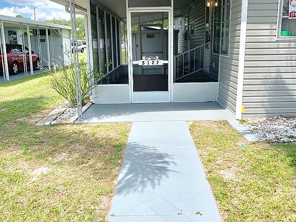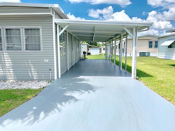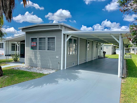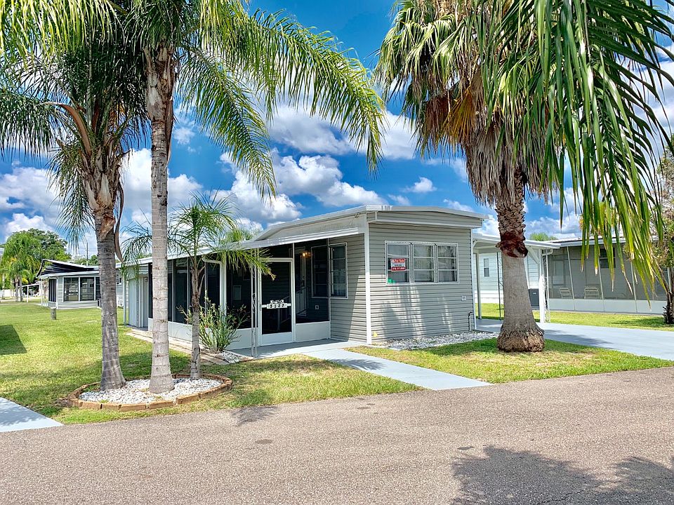 TOTALLY REMODELED!!! BRING OFFERS!!! This home is located in a 55+ community with a lot rent of only $640 a month which includes water, sewer and trash plus the use of the amenities! You will have use of the pool, shuffleboard, the club house, billiards, darts, ping pong and several activities! There is also a washer and dryer if needed in the clubhouse! The community is close to several stores, restaraunts and medical facilities. Some are within walking distance! All of the neighbors and management in the community are very friendly! There is a new metal roof on the home and the entire home has been sided with new vinyl siding! There is a screen room attached to the home and an attached storage shed with a washer hook-up. The attached carport has plenty of room to park 2 vehicles. Use part of the carport as a covered patio if you wish! Step into this is very cute, clean and remodeled 2 bedroom, 1 bathroom home with an open floor plan! There are laminate floors throughout the home with the exception of carpet in both bedrooms and vinyl in the kitchen and bathroom. The home has a new central A/C unit which cools the home very efficiently! Also, a new hot water heater! This home would be a perfect home for a year round resident or would make a great snowbird home! There are finance options available if needed!!!! Furniture may be purchased separately if wanted for additional $2000......