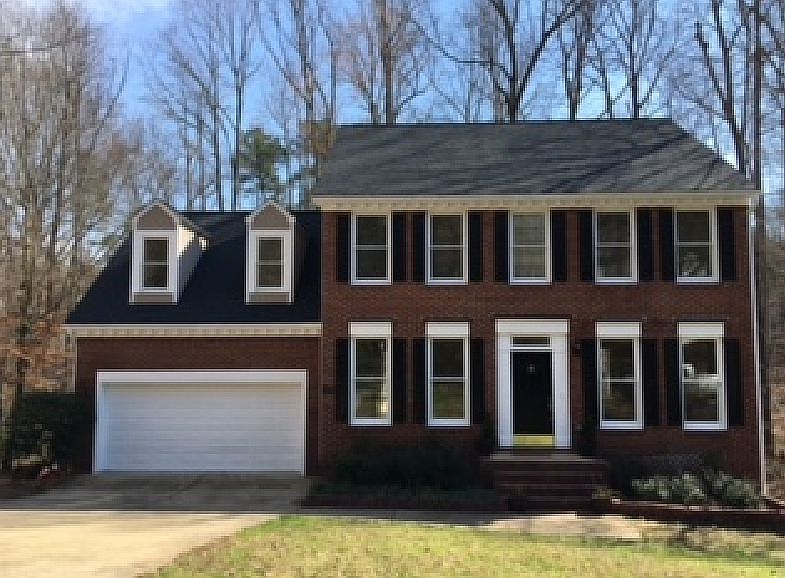 Traditional style three story brick front with new roof. Located in great subdivision. Large rooms and windows with lots of natural light, high ceilings, master bath has walk-in closet and large, waterfall shower. Fresh paint inside and out. New granite counter tops in kitchen and bathrooms. New carpet mid-level and upstairs, new tile flooring in kitchen and breakfast nook, hardwoods in downstairs finished basement. Family room with brick fireplace, formal living room, formal dinning room, large downstairs playroom. Central vac system with lots of storage. Attached 2 car garage. Private natural wooded lot with hardwoods. Gas Heating and hot water heater. Two Tier Deck.