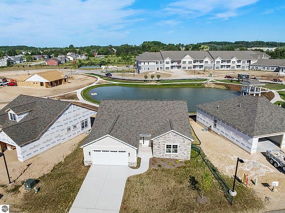 Introducing your new sanctuary in Meadow Valley! This immaculate 3-bedroom, 3-bathroom ranch-style home, built by Rembrandt Construction, offers unparalleled luxury and comfort boasting premium vinyl and stone exteriors, top quality interior finishes, and is located in a brand-new subdivision in a coveted West side location.The main floor welcomes you with a bright and airy living space, complemented by a cozy gas fireplace and flooded with natural light. The main floor layout is designed for seamless living, featuring 2 bedrooms, 2 full bathrooms, office space, a spacious living area, and a spacious kitchen complete with brand-new stainless-steel appliances.The fully finished basement is where endless possibilities await. Whether you envision a guest retreat, home gym, or entertainment haven, this versatile space offers the flexibility to tailor it to your lifestyle. The perks don't end there! With a monthly membership, residents can enjoy exclusive access to a range of amenities, including a fitness center, restaurant, pizza parlor, pub, movie theater, game room, pickleball courts, and more, all located in the communal building.Outside, you can relax and unwind on your private patio, or make use of the community's dog walking trail with your furry friends. If you prefer to stay close, there are sidewalks, and the walking trail with a gazebo and pond is right by your home as well." Bid farewell to tedious outdoor chores with maintenance-free living, as the HOA fee covers your lawn maintenance, sprinkler system upkeep, and snow removal of the roads and driveways. Conveniently situated just a short drive from Traverse City's finest dining, shopping, entertainment, and recreational options, this home offers the perfect blend of luxury, comfort, and convenience. Don't miss your chance to make this your forever home. Schedule a showing today and experience the epitome of modern living in Meadow Valley!