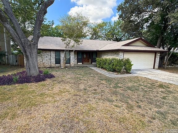 Welcome home to this charming single-story property nestled on a quiet, tree-lined street in northwest San Antonio. This home features fresh interior paint, brand-new luxury vinyl plank flooring, and refinished kitchen cabinets that bring a bright, refreshed feel throughout. Galley kitchen has ample storage and tile countertops. Spacious living area with vaulted ceilings, exposed beam, and brick fireplace. Large primary suite with dual sinks. Mature trees, two-car garage, and convenient location near Loop 1604, shopping, and schools. Move-in ready! Set up a showing and see for yourself!