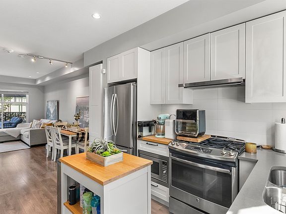 Contemporary interiorsThree bedroomsOpen concept kitchenQuartz countertopsStainless steel appliancesWood flooringGas hook-up for bbq