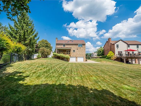 Experience comfort, quality, and timeless style in this meticulously maintained Sosso-built brick home in sought-after Karrington Woods. The warm, welcoming floor plan includes a first-floor den with custom built-ins, a family room with new carpet and cozy log-burning fireplace, and a chef’s kitchen with quartz counters, hand-built cherry cabinetry, large island, and covered deck—perfect for morning coffee or evening gatherings overlooking the level, wooded yard. Retreat to the serene primary suite with double sinks, vanity and dressing area, & enjoy the convenience of second-floor laundry. The walk-out game room with remodeled full bath is ideal for movie nights or guests. Thoughtful updates include Pella windows, newer mechanicals (furnace 2023, AC 2022 & hot water tank 2024), and an oversized garage with hot/cold water. Just minutes to shopping, dining, North Park, medical facilities, Pine-Richland Schools, and major highways—everything you need is right here.